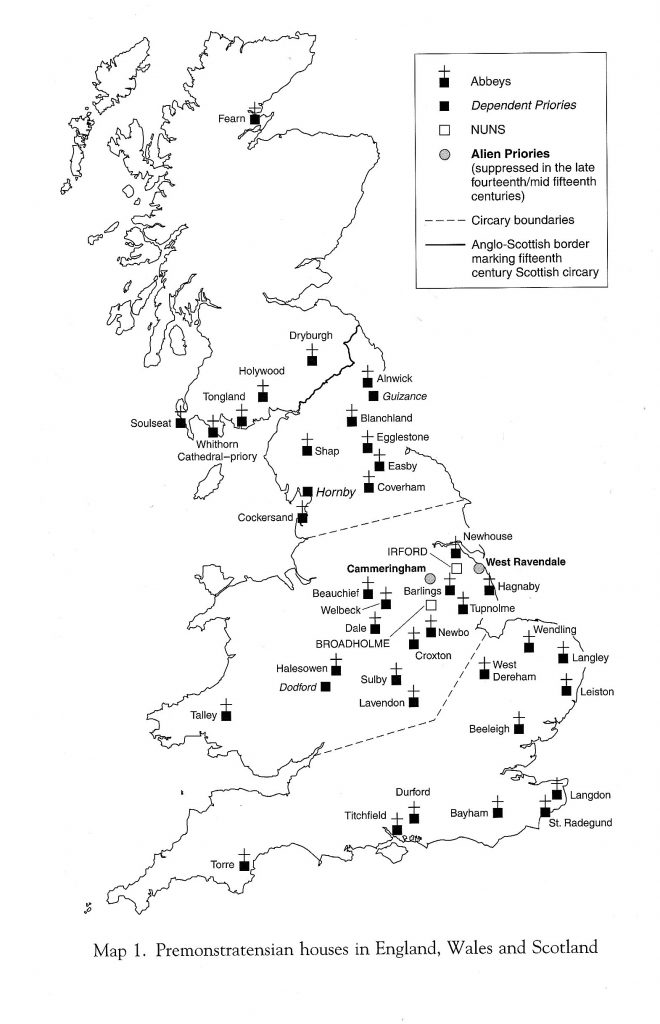The order spread rapidly through Europe and the first Premonstratensians arrived in England in 1143, founding their first house at Newhouse (or Newsham) in Lincolnshire. They went on to establish thirty-seven abbeys, two nunneries and four other priories in Britain.