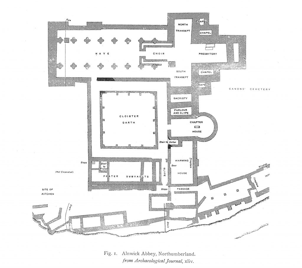 Alnwick Abbey, in Northumberland, lay on the north bank of the river Aln about a mile above the town. It was founded by Eustace Fitz-John, sheriff of Northumberland, in 1147. It is said that the convent arrived (from Newhouse) in 1148.